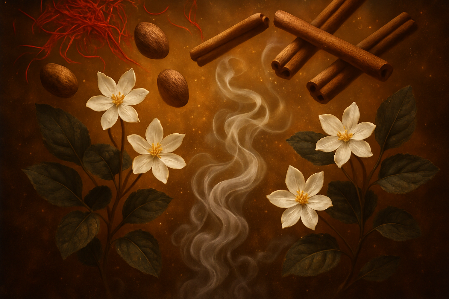 At the pinnacle of this aromatic symphony are the top notes – a captivating fusion of Saffron, Nutmeg, and Cinnamon.In the heart of Flame, a mesmerizing dance unfolds, where the sultry notes of Jasmine, the earthy depth of Patchouli, and the mystical allure of Incense intertwine.