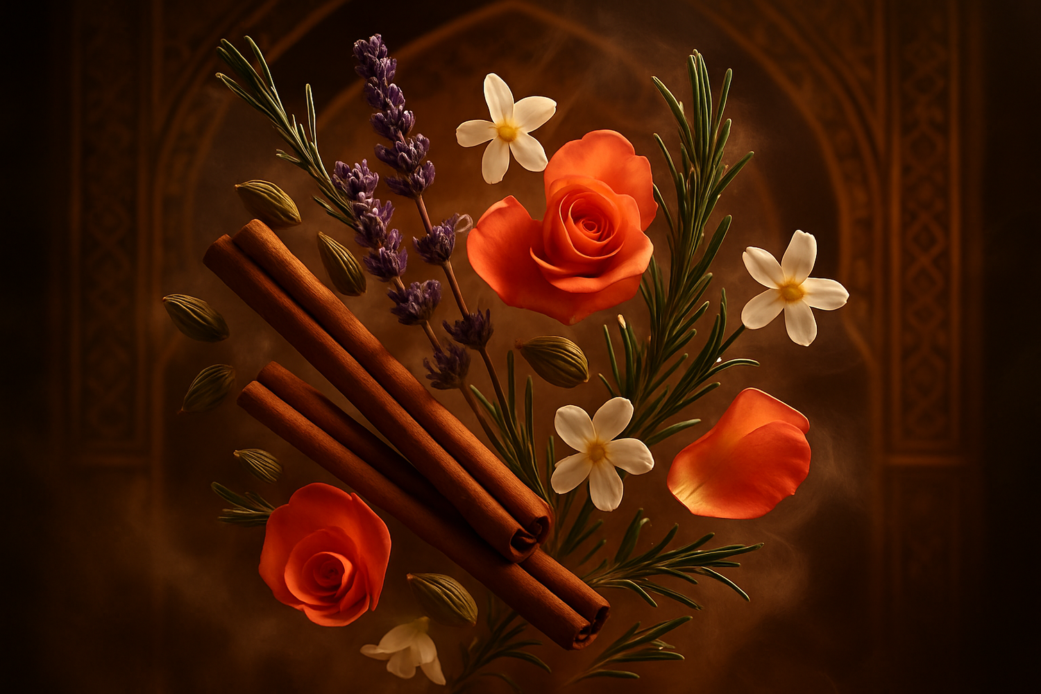 The heart reveals a warm blend of spicy, aromatic, and floral notes, adding depth and intrigue