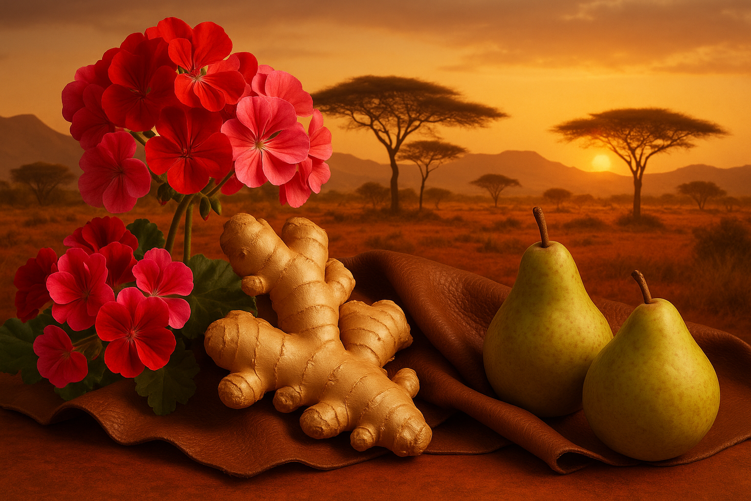 A rich blend of geranium, ginger, leather, and pear creates a warm, earthy scent, mirroring Africa's diverse landscapes.